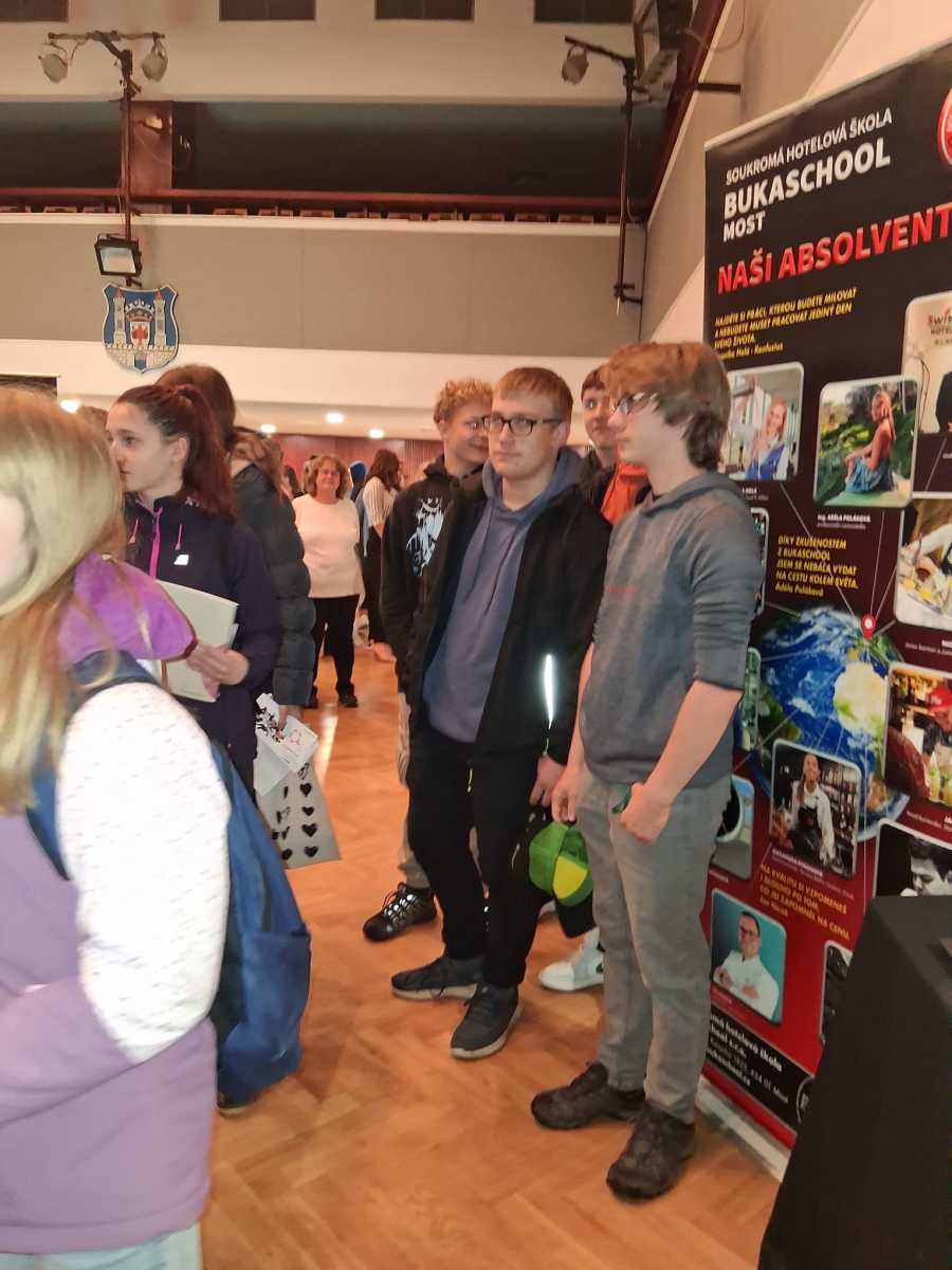 Ve středu 22.10. jsme s žáky 8. a 9. ročníku vyrazili do Kulturního centra v Rakovníku, kde se konal Veletrh škol a vzdělávání. Cílem bylo pomoci žákům lépe se zorientovat v nabídce středních škol a učebních oborů, aby si mohli snáze vybrat tu správnou cestu po základní škole. Na burze se představila řada středních odborných škol, gymnázií i učilišť z celého regionu. Žáci měli možnost mluvit se studenty i učiteli, prohlédnout si ukázky prací, vyzkoušet si některé činnosti, získat informace o přijímacích zkouškách, možnostech ubytování a odnést si užitečné materiály o jednotlivých oborech.